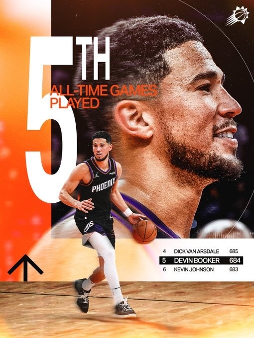 cột mốc quan trọng! Booker Suns chơi 684 trận trong sự nghiệp, vượt qua Kevin Johnson để giành vị trí thứ 5 lịch sử