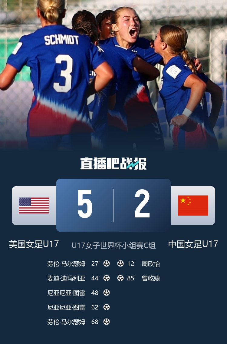 Giải vô địch bóng đá nữ U17 thế giới - Trung Quốc 2-5 và Hoa Kỳ chịu thất bại đầu tiên. Chu Tâm Di và Tăng Nhất Kiệt là những vị cứu tinh của thế giới.