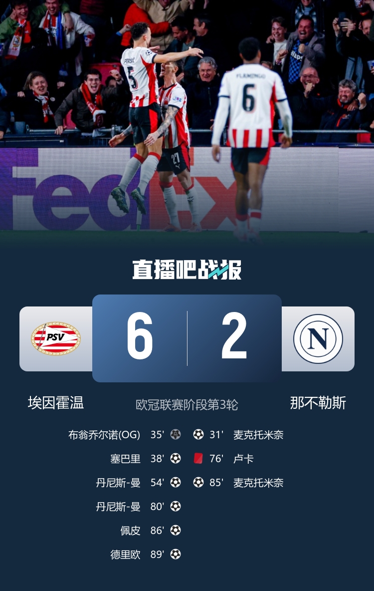 McTominay có một cú đúp. Naples Ten-man đã phải chịu thất bại 2-6 trên sân khách trước Eindhoven. Conte đã dẫn dắt đội chiến đấu trên cả hai mặt trận và thua 2 trận liên tiếp trên mọi đấu trường + 3 trận thua trong 5 trận vừa qua.