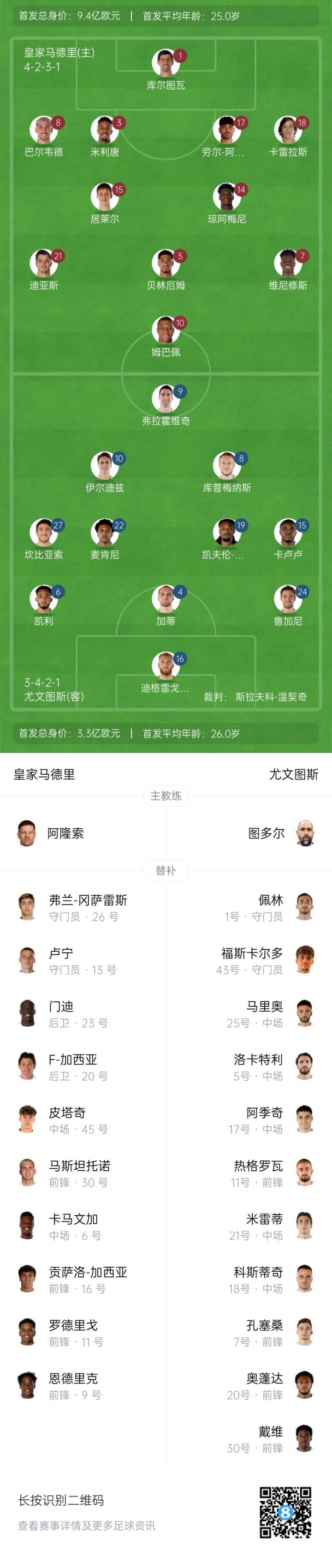 Ở vòng 3 UEFA Champions League, Real Madrid đối đầu với Juventus và đội hình xuất phát đã được công bố trước trận đấu. Bên phía Real Madrid,Mbappe và Vinicius đá chính, Mastantono vào sân từ băng ghế dự bị. Đối với Juventus, Yildiz và Vlahovic đã chơi.