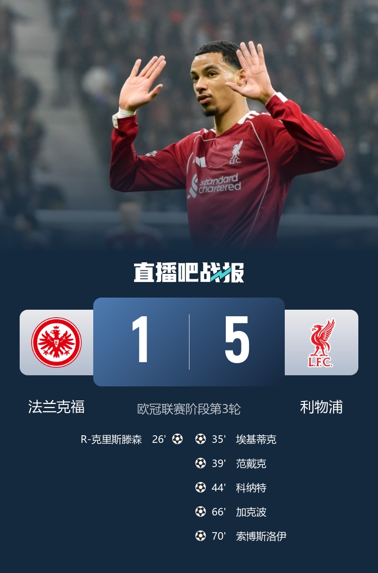 Ở vòng đấu Champions League này, Liverpool đã đánh bại Frankfurt với tỷ số 5-1.