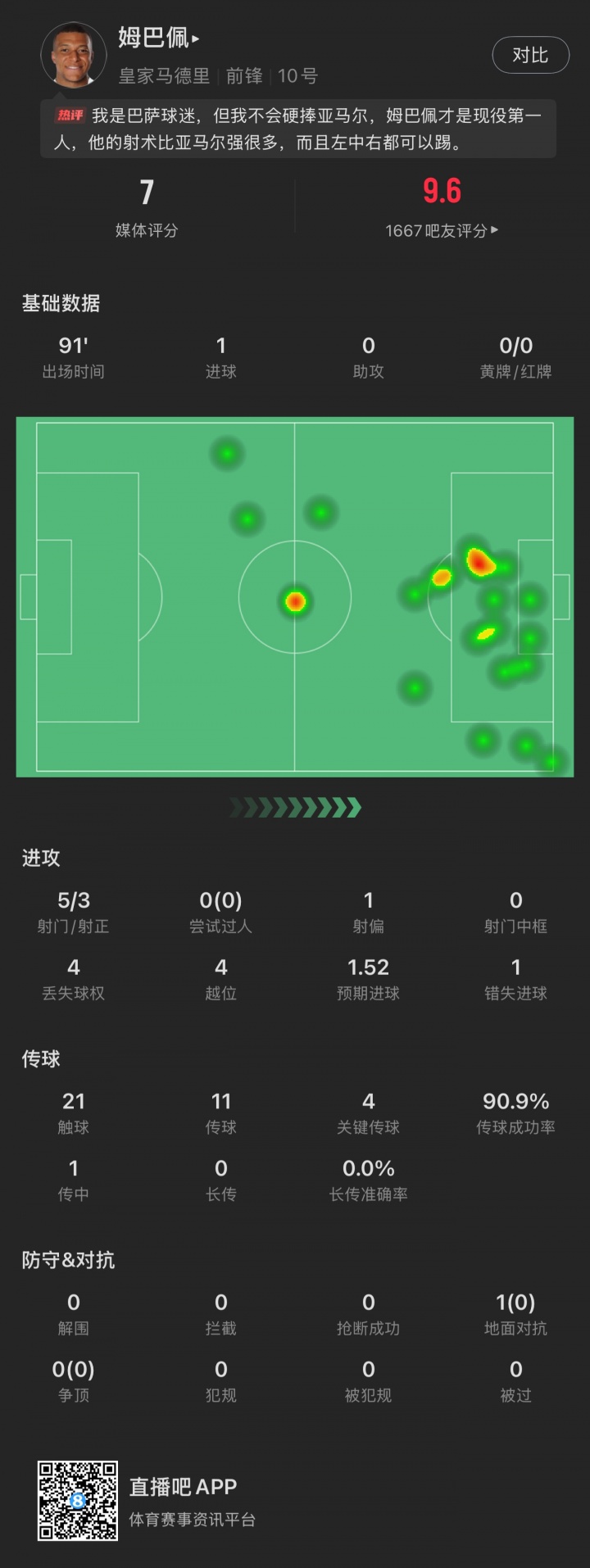 Real Madrid 2-1 Barcelona, kết thúc 4 trận El Clasico liên tiếp thất bại. Mbappé ghi bàn + bỏ lỡ điểm + có hai bàn thua không được công nhận và bị thay ra ở phút 90.